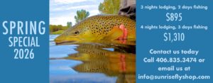 It is terrestrial season on the Big Hole River. We are having some Spruce Moth activity from Jerry Creek down to Divide. Trico’s have picked up in the mornings and hopper activity has kept our rods bent in the afternoons. Ant patterns are also working well in the afternoon. We are also throwing streamers in the morning hours with success in the deeper pools and shallow riffles.